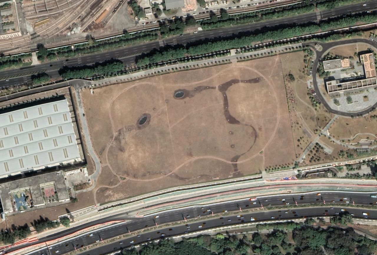 Clearly, this is not a very good place to fly, as it has the headquarters of the Shenzhen Metro, two big roads, the railroad, the police department, and the headquarters of a company that does not want us to fly there, all next to it. The only reason we are flying there is that it is the only place in Shenzhen with no trees and relatively little infrastructure, and that a friend told me that they used to fly there.