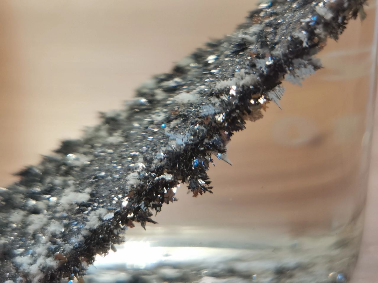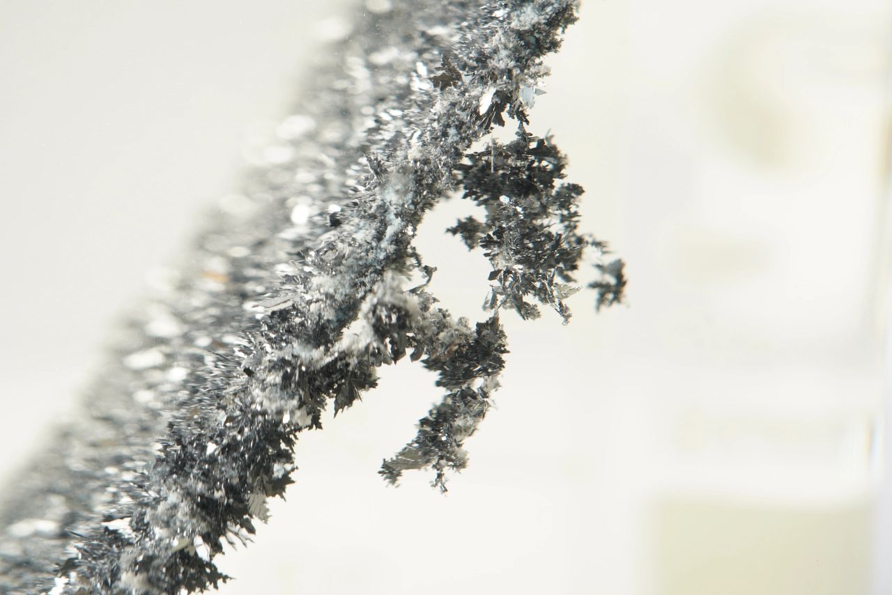 Because the displacement reaction was slow, I constantly photographed around 20 samples at 30-second intervals over a period of around a week or two, which gave me a couple hundred pictures. 90% of them were blurry and horrible. The other 10% was interesting. This one was the most interesting one.