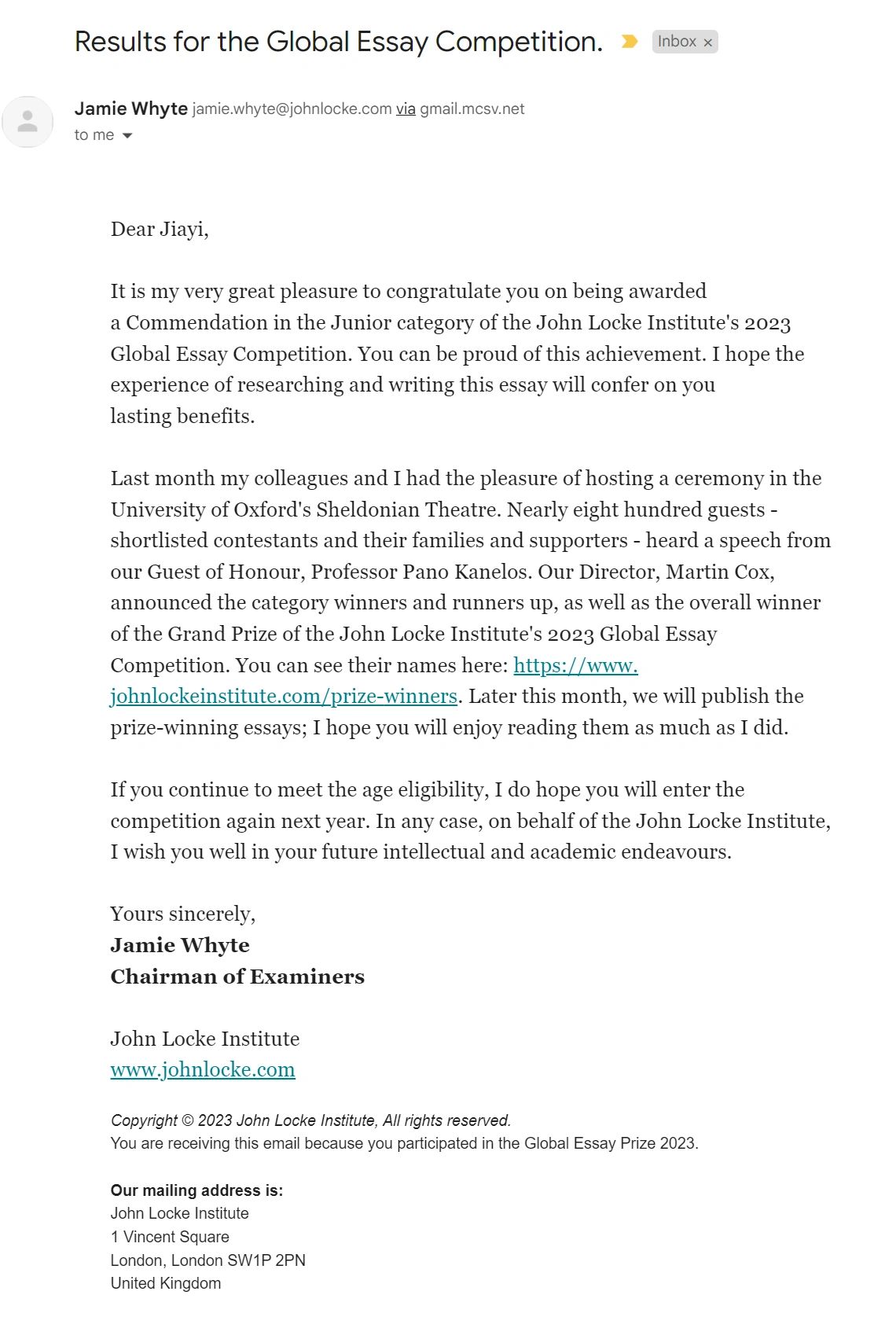 John Locke results are out, and I got a commendation. About what I expected. My essay was quite orthodox, although I had to strip away much of the text to stay under the word limit. Still, good result, enjoyed writing the essay, and maybe entering again next year.